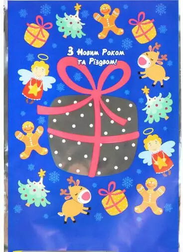 Одна сторона поліпропілен з нанесеним барвистим малюнком. Інша сторона пакета – дзеркальна.