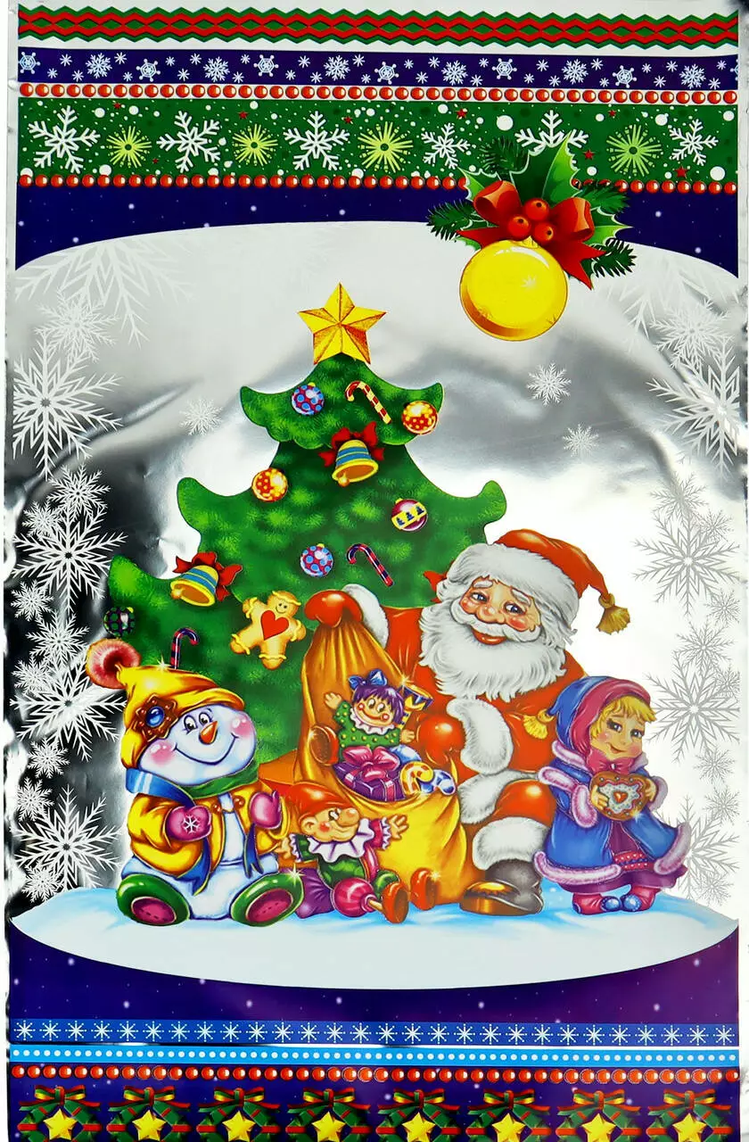 Одна сторона поліпропілен з нанесеним барвистим малюнком. Інша сторона пакета – дзеркальна.